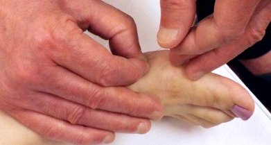 ⑨指の間に鍼が有るのを確認できる程度に左右圧をかけます。